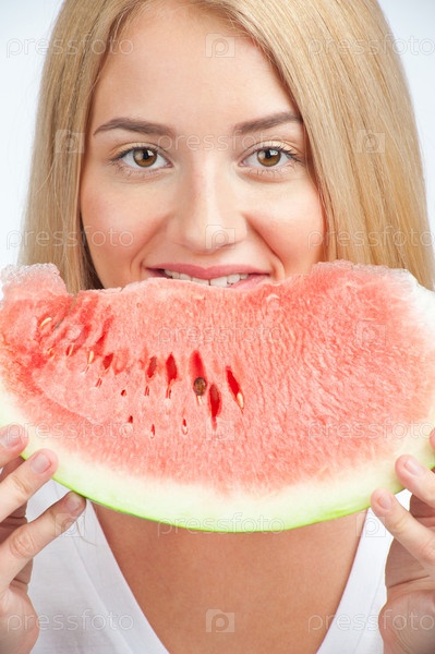 Девушка ест арбуз