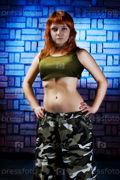 Портрет молодой женщины на фоне стены