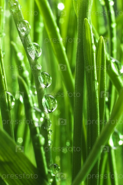 Утренняя роса на зеленой траве