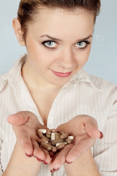 Женщина с таблетками в руках