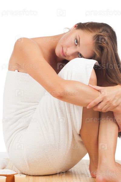 Портрет красивой молодой женщины в полотенце