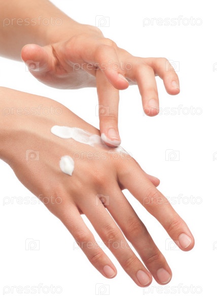 Нанесение крема на кожу рук
