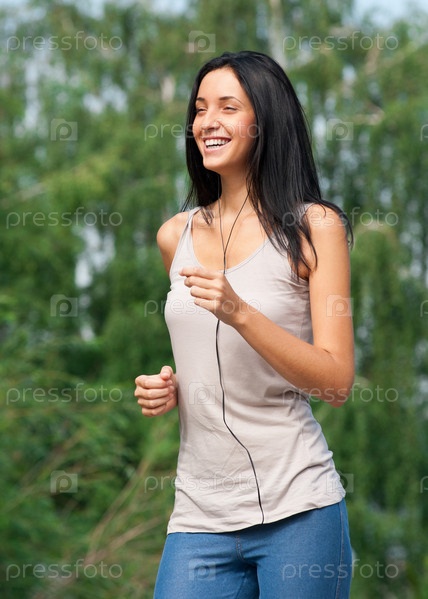 Веселая девушка на пробежке в парке