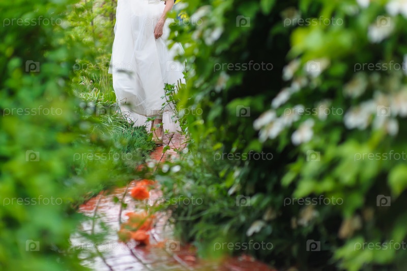 Невеста среди зеленых кустарников