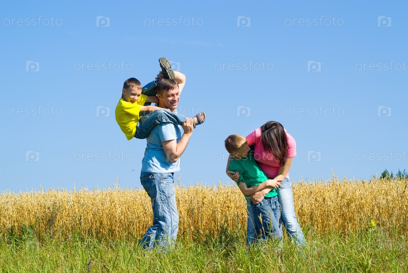 Счастливая семья на природе в летнее время