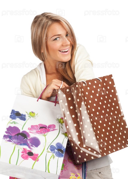 Счастливый красивая женщина с красочными сумок в своих руках