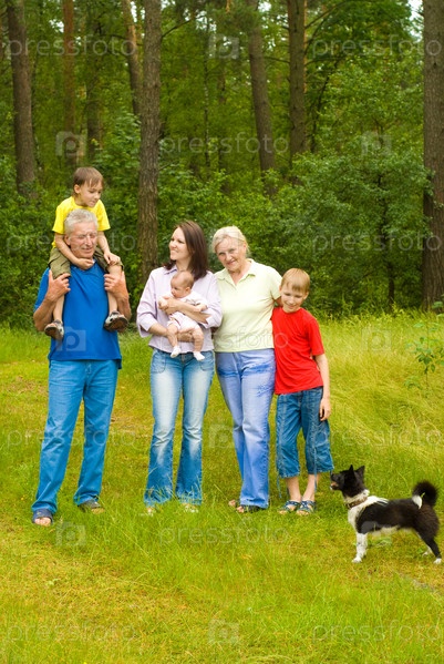 Счастливая семья из шести человек на природе