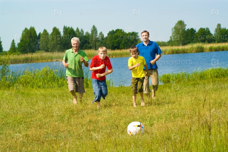 Семья играет в футбол