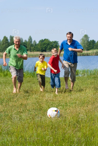 Семья играет в футбол
