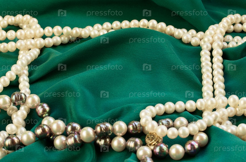 Зеленый шелк с жемчугом