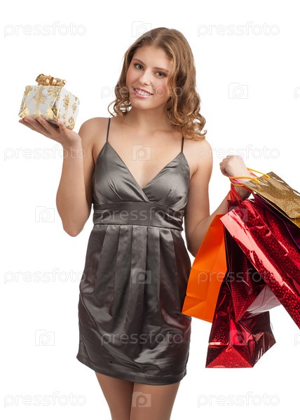 Счастливая девушка с подарками