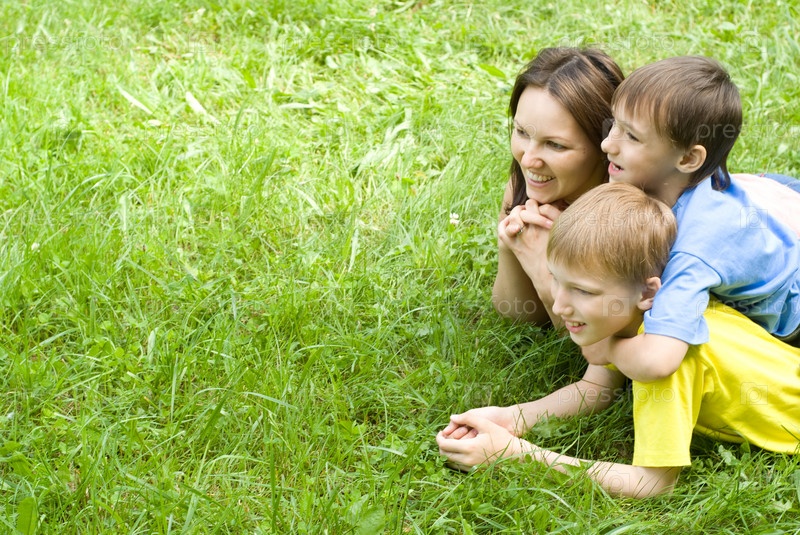 Мама с сыновьями на природе