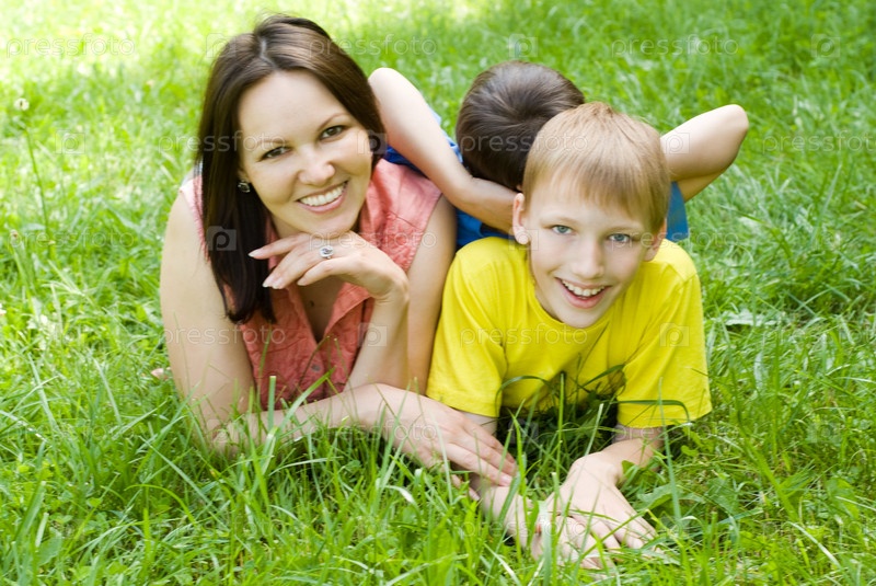 Мама с сыновьями на природе
