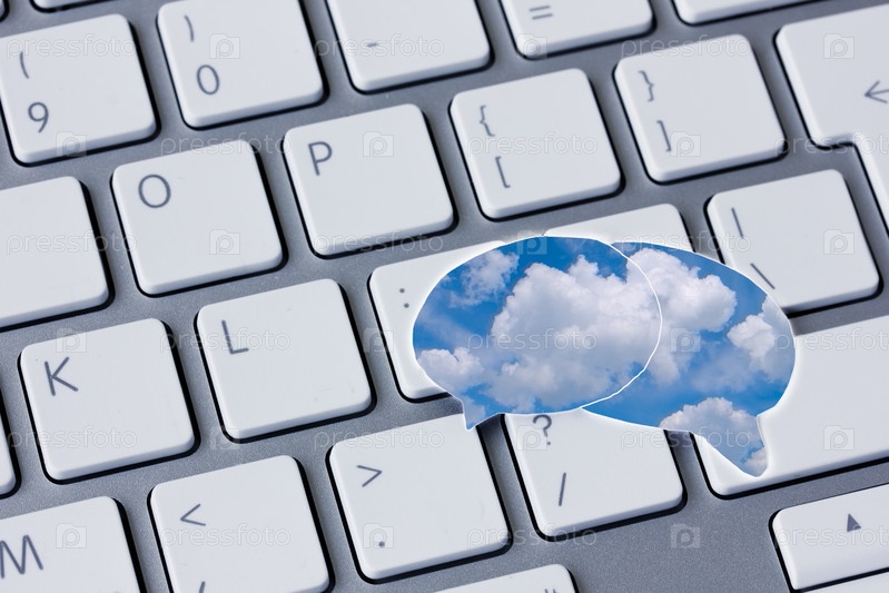 Концепция социальных средств массовой информации с двумя речевыми облачками на клавиатуре