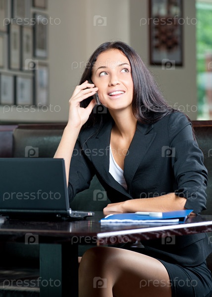 Молодая привлекательная деловая женщина в кафе