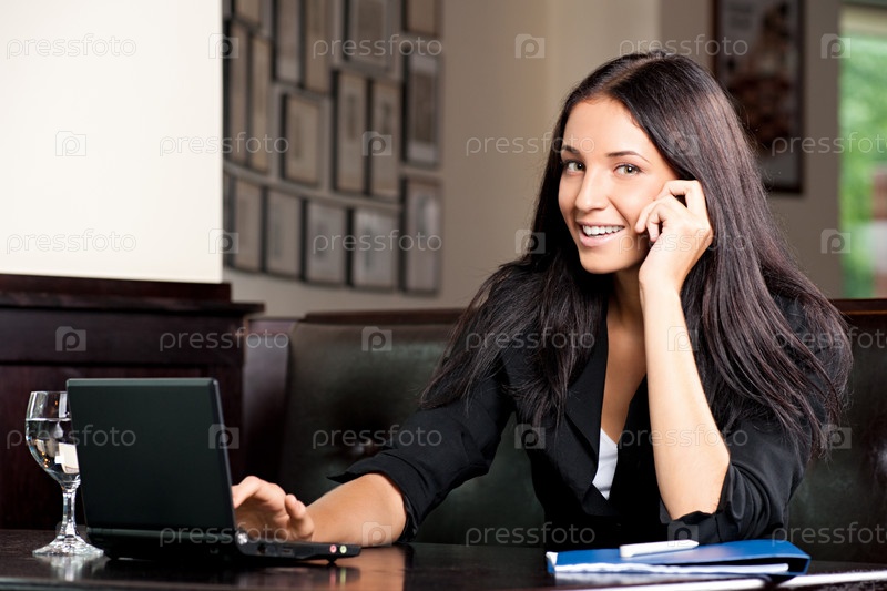 Молодая привлекательная деловая женщина в кафе