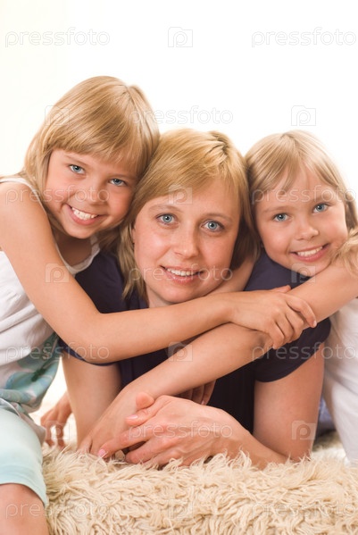 Счастливая мама с двумя дочерьми