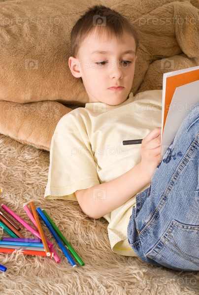 Мальчик лежит на ковре