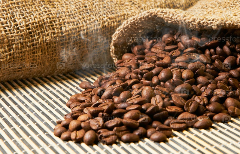 Жареные горячие зерна кофе
