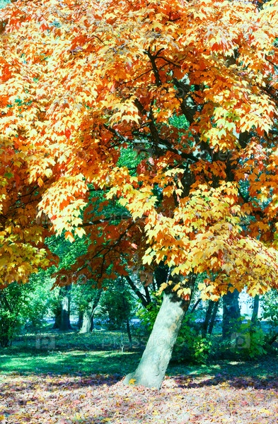 Клен в осеннем городском парке