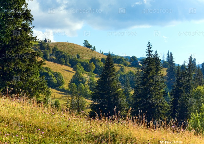 Летний горный пейзаж с цветущими лугами