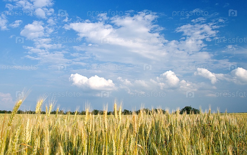 Ржаное поле летом на фоне голубого неба с облаками