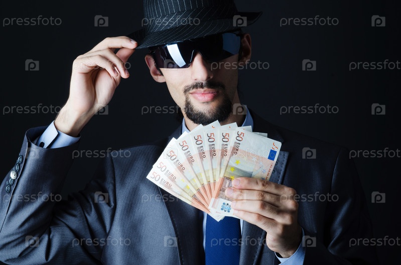 Молодой бизнесмен в шляпе и очках с евро