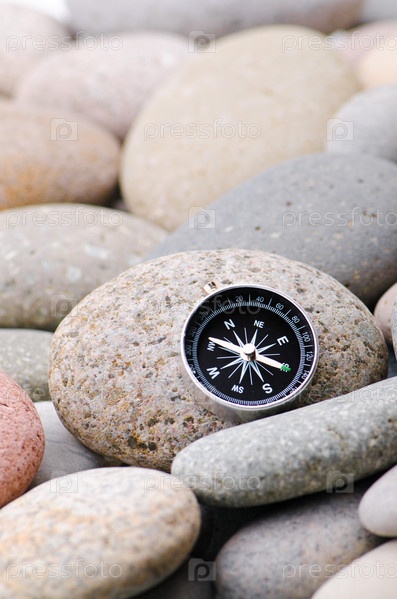 Компас на камнях крупным планом