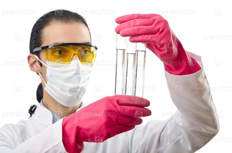 Молодой ученый работает в лаборатории