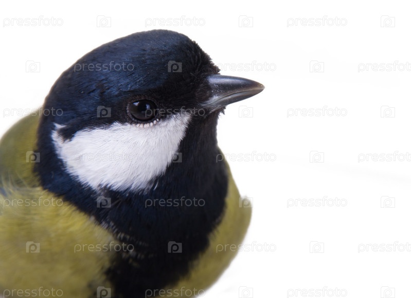 Крупным планом синица на белом фоне