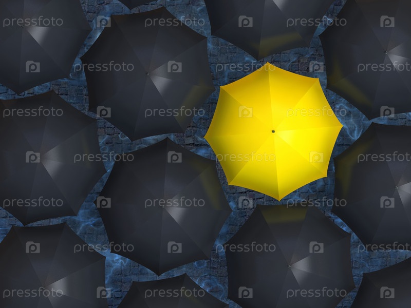 Желтый зонтик среди черных