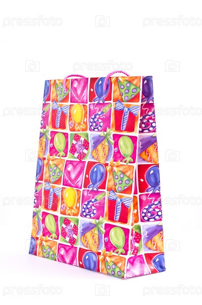 Бумажный пакет для подарков или покупок изолирован на белом