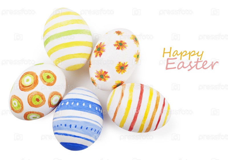 Крашеные пасхальные яйца на белом фоне