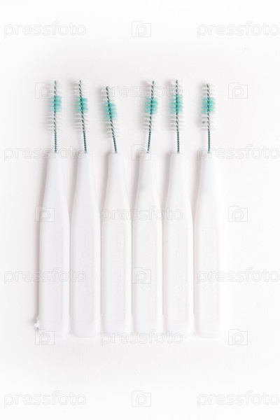 Белая зубная щетка на белом фоне (ближе)