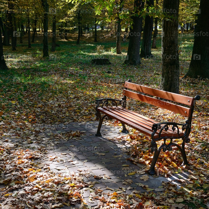 Деревянная скамейка в парке