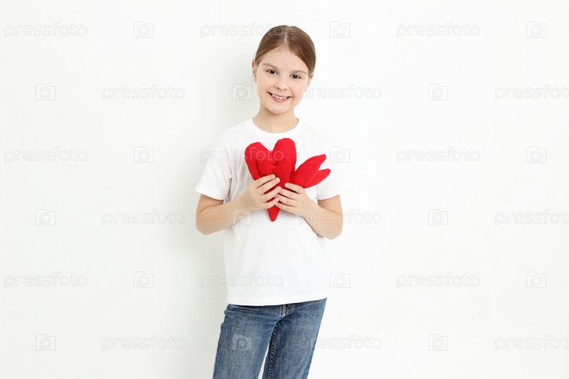 Маленькая девочка с красными сердцами