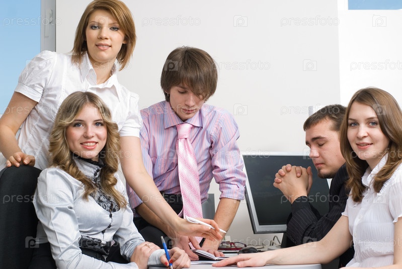 Молодежная бизнес-команда с компьютером в офисе