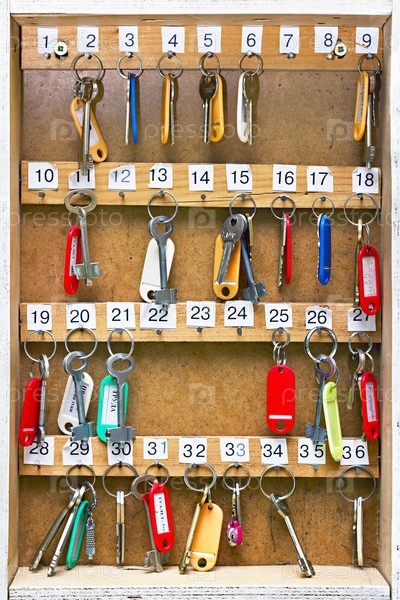 Ключи с бирками висят на доске