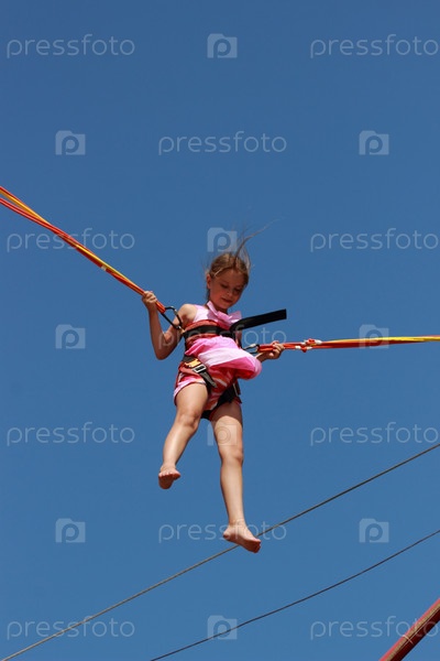 Милая маленькая девочка прыгает на батуте