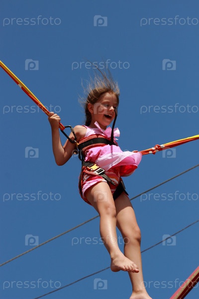 Милая маленькая девочка прыгает на батуте