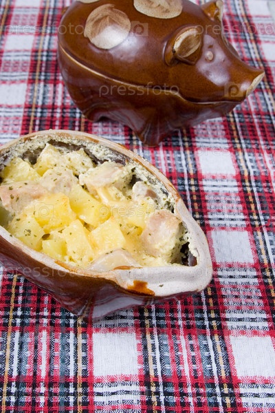 Запеченный картофель с мясом в горшочке