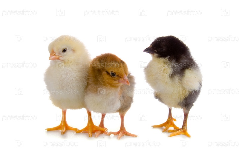 Три цыпленка на белом фоне