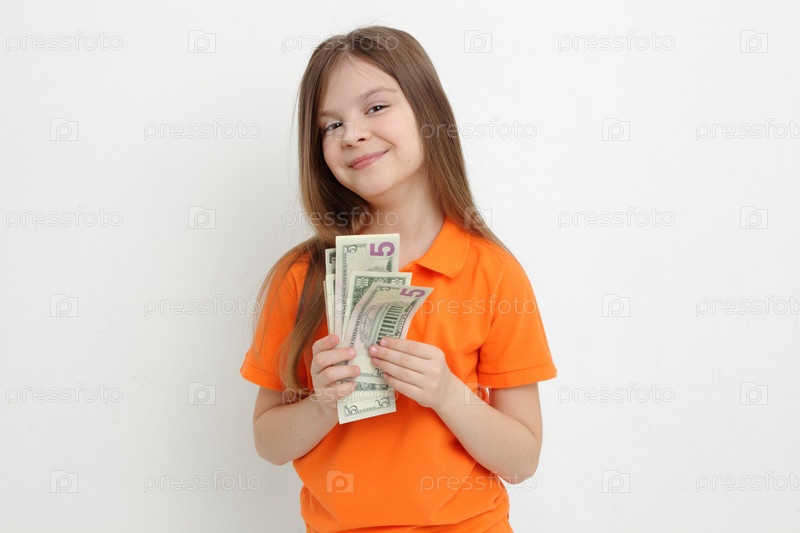 Маленькая девочка с долларами
