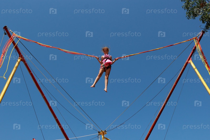 Милая маленькая девочка прыгает на батуте