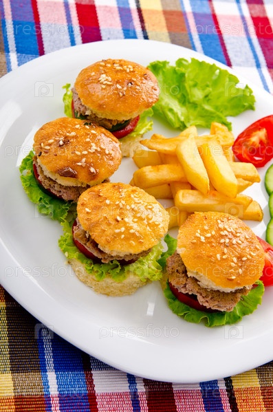 Гамбургеры с картофелем фри на тарелке