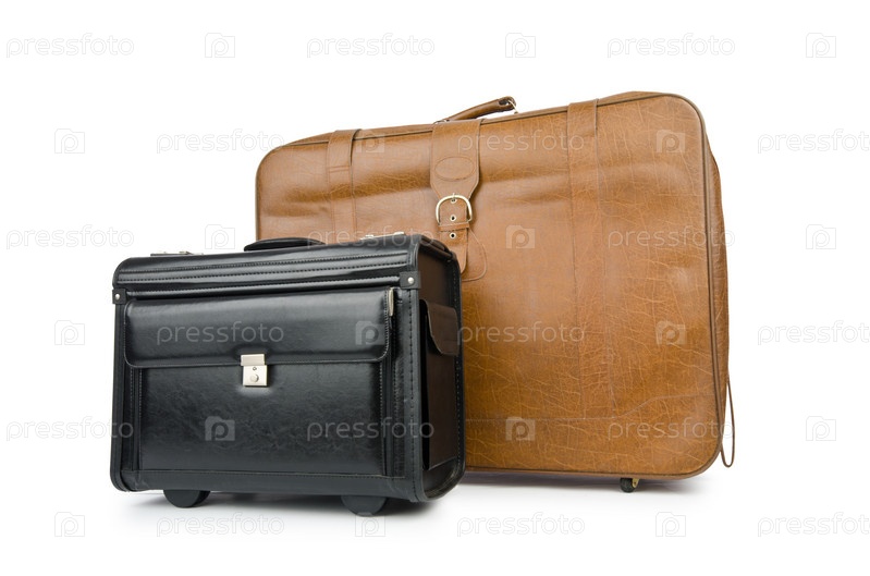 Концепция путешествия. Чемоданы на белом фоне