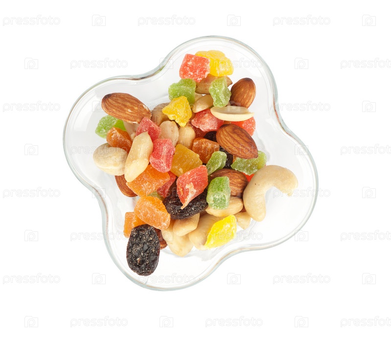 Орехи и сухофрукты на белом фоне