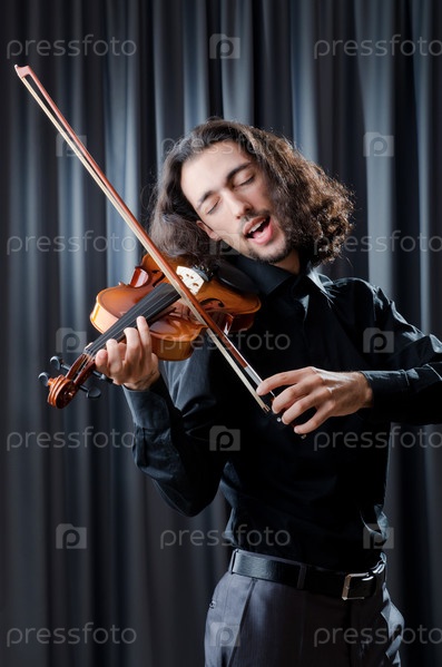 Молодой музыкант играет на скрипке