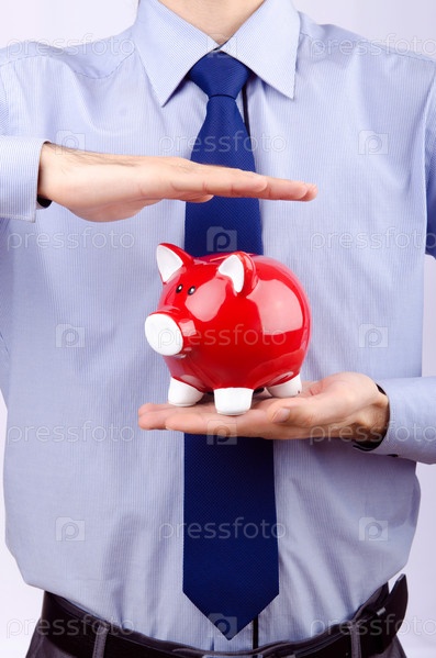 Свинка-копилка в мужских руках