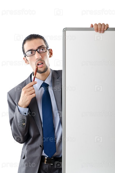 Молодой предприниматель у белой доски